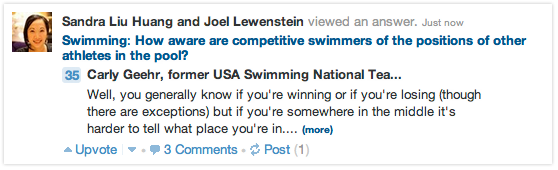 Elsewhere, featured Quora content will be included as a channel on the Pulse and Flipboard newsreaders starting this week. And Quora just redesigned user profiles to show lengthier excerpts of that user’s posts, so, for active writers, they look much like a blog.