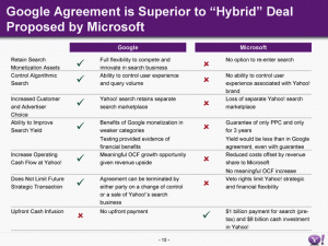 While Microsoft and Yahoo are periodically talking, they also periodically get in snits with each other–the latest due to Microsoft pique over Yahoo’s posting of a regulatory presentation dissing the software giant (see one such slide below; click on it to make it larger).